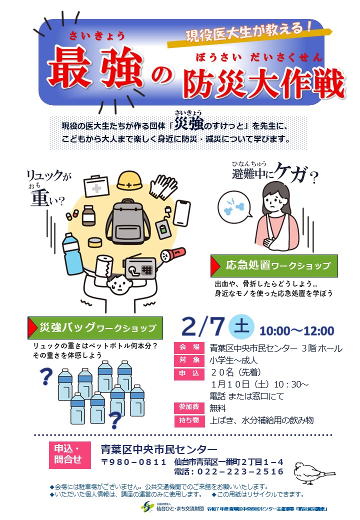 トップページ > 市民センターを探す > 青葉区中央市民センター > 講座のご案内 > 令和7年度 防災減災講座
