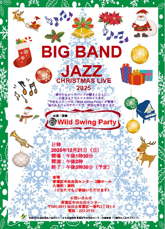 地域で活躍する個人や団体に日頃の成果を発表したり、地域住民に気軽に集い楽しさを共有する「場」を提供するイベントで地域の関心を高め、地域の活性化、地域交流を目指します。全4回を予定しており第3回はBIG BAND JAZZ CHRISTMAS LIVE 2025です。