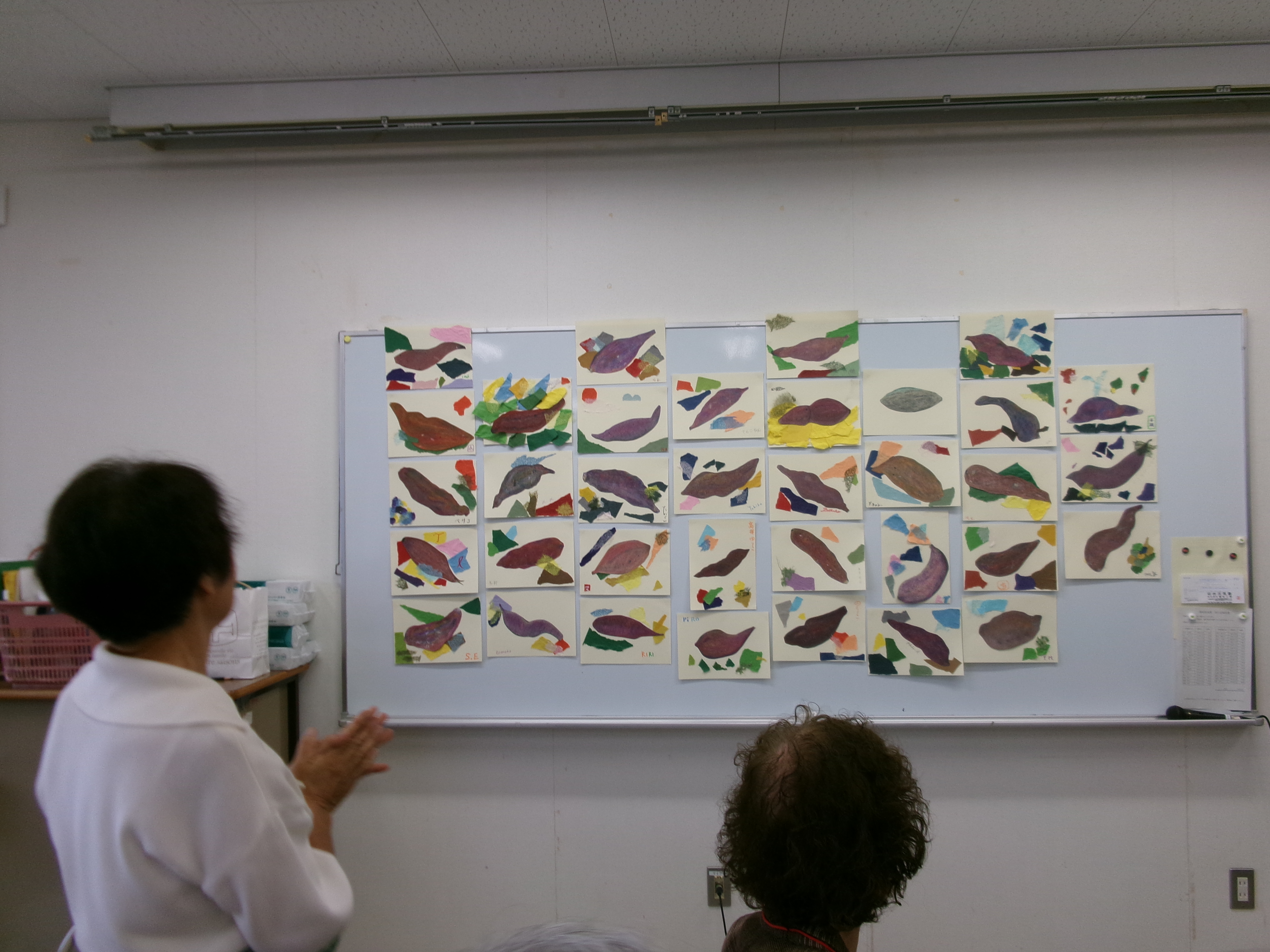 今回は旬のさつま芋をテーマに、五感でさつま芋の質感や色彩を楽しみながら、オイルパステルを使って自由に描きました。思い思いの色を重ねることで、手を動かし、混色を楽しみ、絵を描く楽しさと心のリフレッシュを感じました。