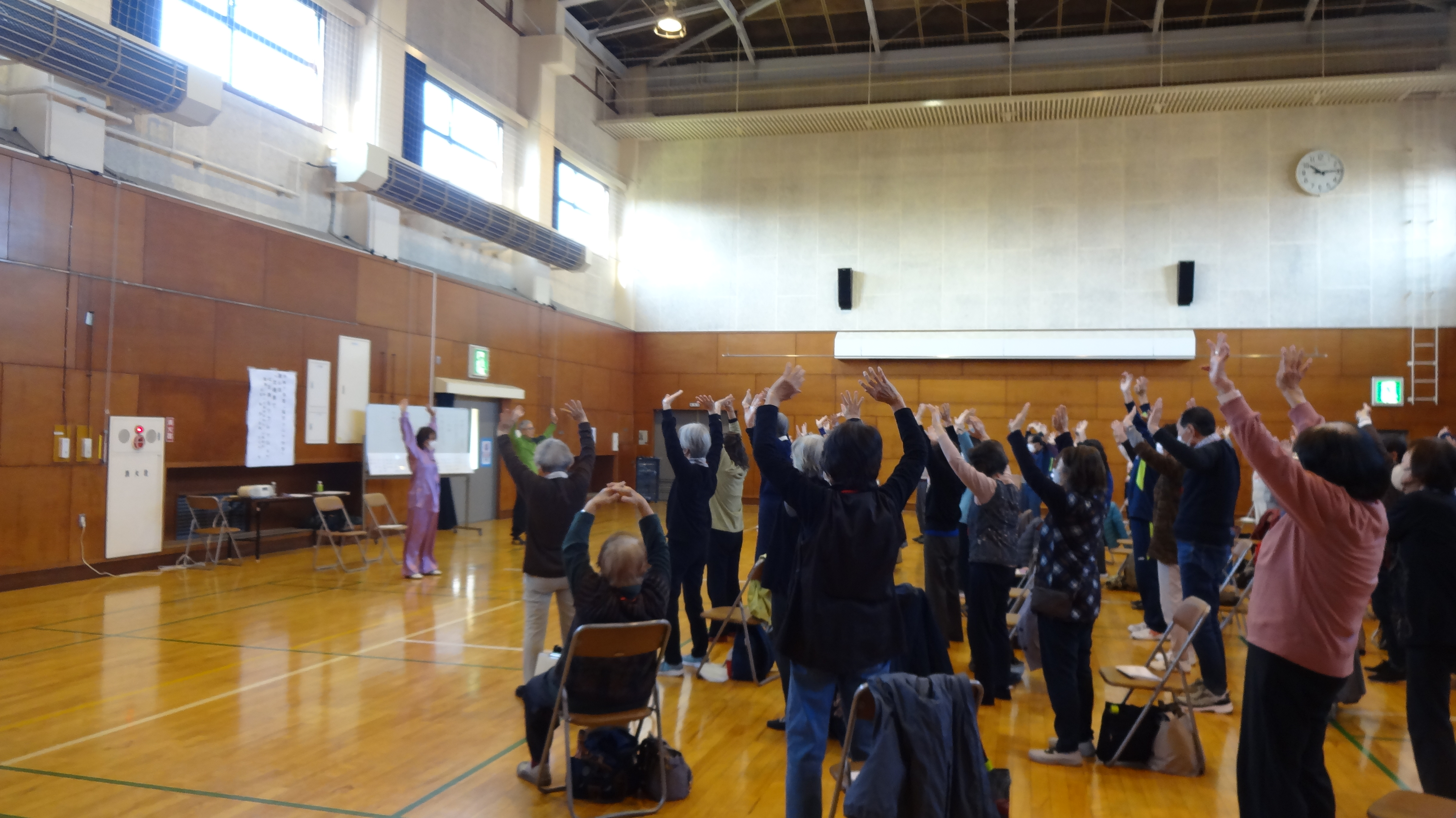 受講生は講師の方の説明を聞き、動きの見本をみながら熱心に取り組みました。「初めての体験だったが、体が暖まってよいと思った」「体がスッキリした」などの声が寄せられ、多くの方のリフレッシュにつながったようです。