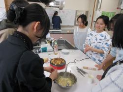 第12回定例会は、3名の高校3年生を送別する「三年生を送る会(三送会)」を開催しました。初めに調理実習をしました。ホットケーキミックス粉で「たこ焼き」を作り、具材にはチーズやウインナー、グミやミンティアを入れたり様々な味のたこ焼きを作りみんなで味わいました。次に、「ツッコミかるた」というカードゲームを卒業生チームと在校生チームに分かれて行いました。トークテーマの内容にしたがってトークをして、好きなタイミングでボケることができるゲームで、みんなで和気あいあいと大変盛り上がりました。最後は卒業生に感謝の気持ちを込めて寄せ書きした色紙をプレゼントしました。卒業していく先輩方との別れは寂しいですが、最後にみんなで楽しい時間を過ごすことができ、笑顔で今年度のありす定例会を終了することができました。