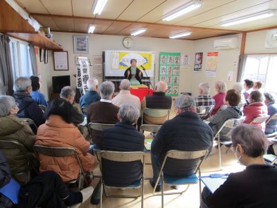泉中央地区社会福祉協議会友愛町支部「ゆうあいサロン」との共催で、「落語を聴く会」を友愛町集会所で開催し34名の方が参加しました。今年度は、貝ヶ森市民センター主催講座から発足したサークル「落語を楽しむ会 貝ヶ森」から嵐々亭嵐乱(らんらんていらんらん)さん、鈴の家孝幸(すずのやこうこう)さんをお招きして「風呂敷」と、「粗忽の釘」を披露いただきました。初めに、お二人は自己紹介として落語を始めたきっかけを話してくださいました。その後、巧みな話術で演目を話し始めると、話に引き込まれ情景がありありと浮かんできて、会場では終始笑いが絶えませんでした。最後はアンコールとして、嵐々亭嵐乱さんに「小話・よたろう」もしていただきました。そのお話も大変面白く、最後はみなさん笑顔でお二人に感謝の拍手を送り、大盛況のうちに終えることができました。