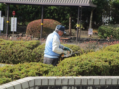 - 主な活動内容 市民センター前広場の西側・南側の植え込みの剪定
