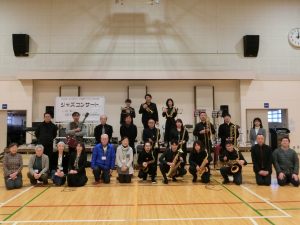 会場の体育館には地域の方をはじめ90人近くの方々が集い、本格的なジャズの音楽に酔いしれるひと時を過ごしました。