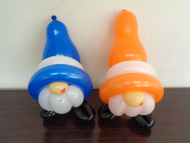 涼しげな色合いでまとまったイルカのバルーンアート作品をいただきました。(作:岡本 剛)