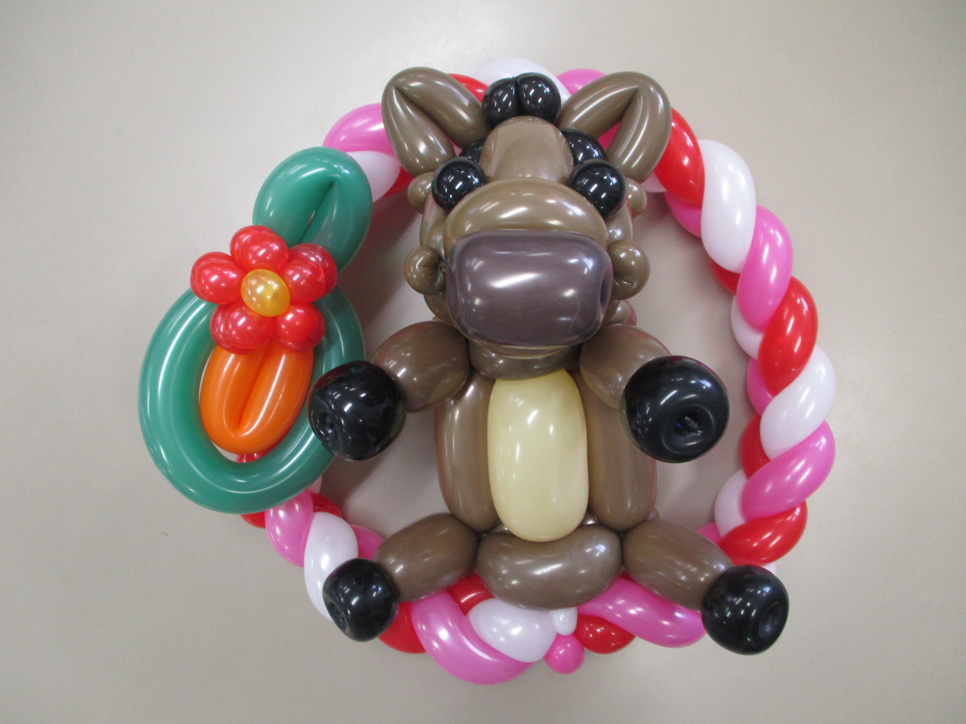 令和8年の干支である馬をモチーフにしたバルーンアートリース作品をいただきました。(作:岡本 剛)