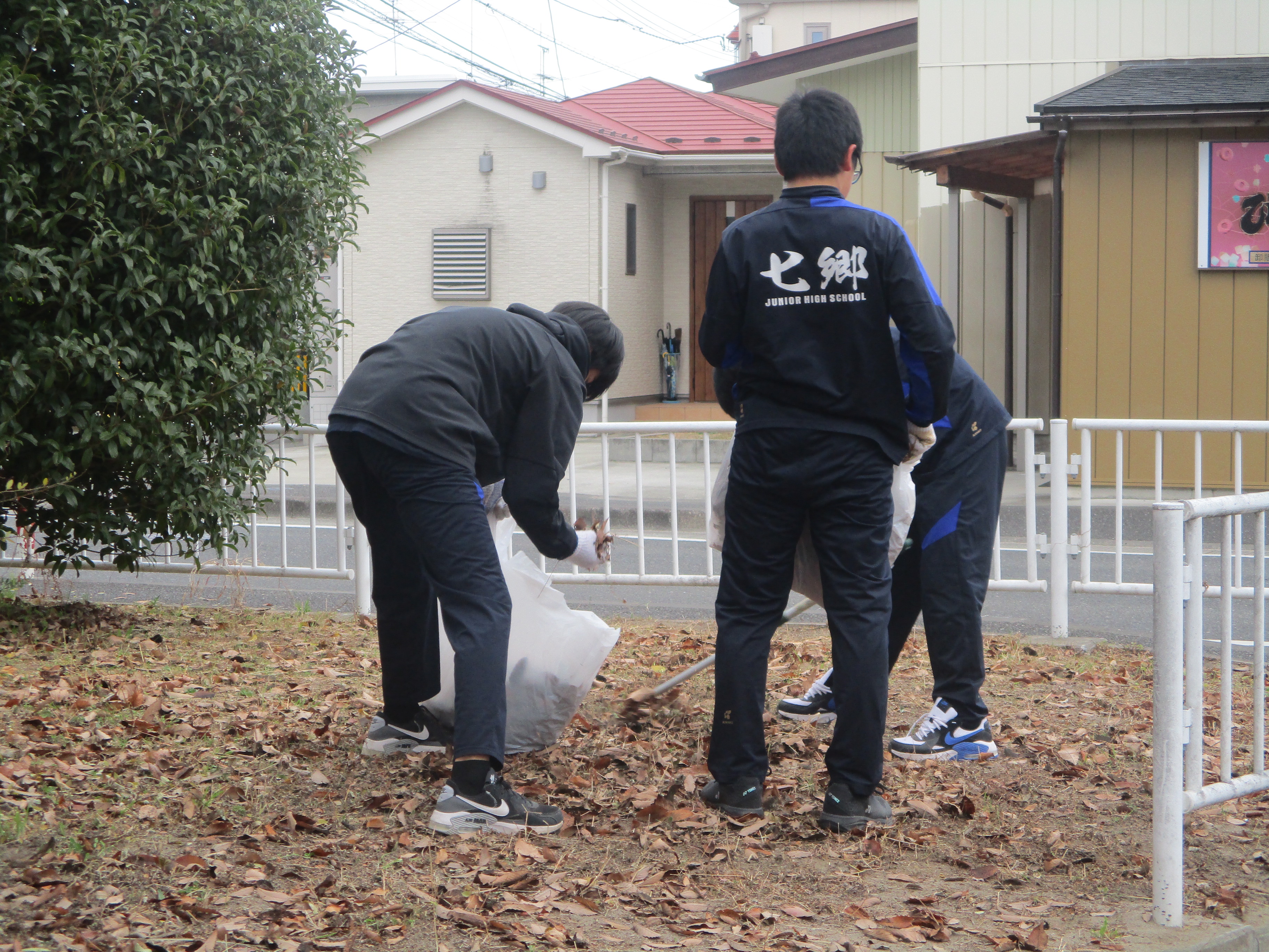 仙台市立七郷中学校の生徒さんが地域クリーン作戦で、七郷市民センターに隣接する荒井3丁目公園の清掃活動を行いました。当日は七郷地区各町内会の皆様のご協力をいただきながら、公園周辺の落ち葉やごみの清掃をしておりました。どうもありがとうございました。