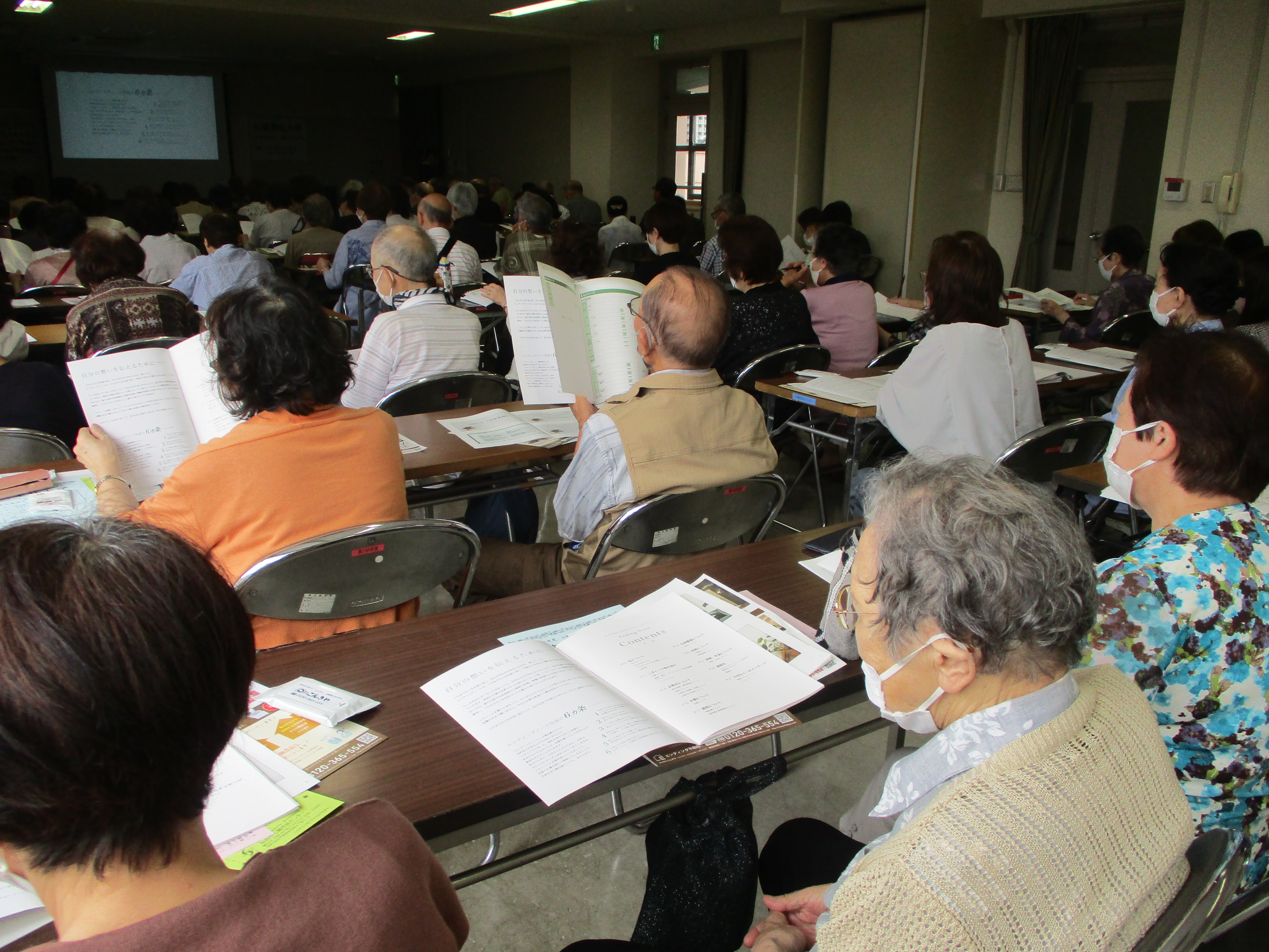 その後、エンディングノートを用いて、これまでの人生を振り返りつつ、これからどんな希望を持って日々を過ごしていくのかを実際に記入しました。隣同士楽しく会話しながら綴っていくことで、終活について改めて考え直す良い機会となりました。