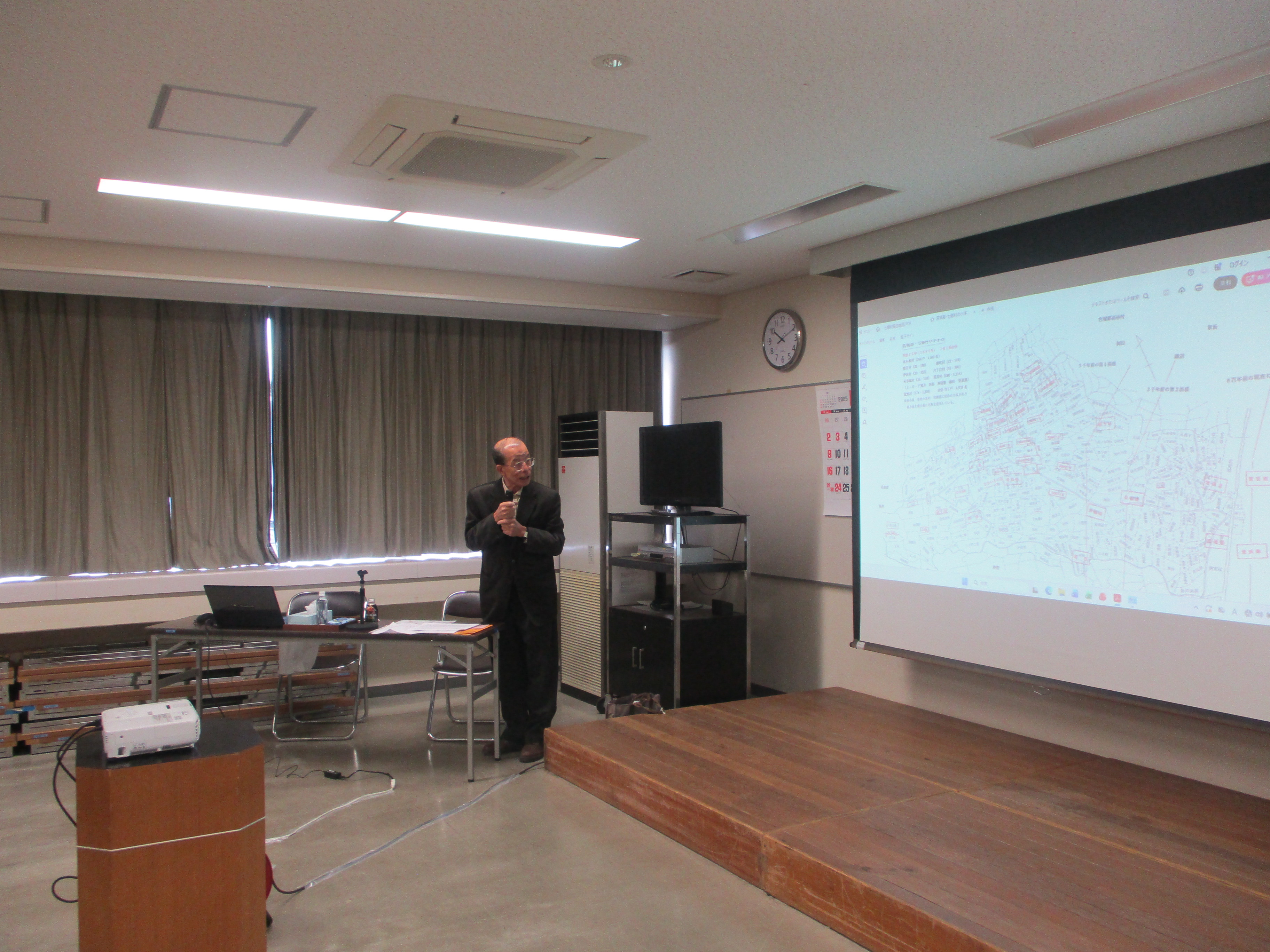 老壮大学運営委員会の運営委員長でもある、郷土史研究会の松木 達雄 氏を講師にお迎えし、運営委員会自主企画として第6回「七郷を学ぶ(第9回)」を開催しました。当日は64名が参加し、七郷地域等の歴史について学びを深めました。