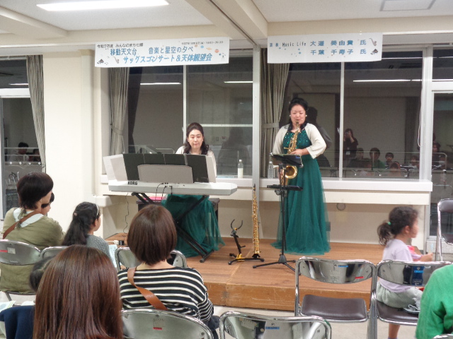 第1部では、Music Lifeのサックス 大道 美由貴 氏とキーボード 千葉 千寿子 氏によるコンサートを行い、「木星」や「星に願いを」など星空にぴったりな曲に会場が温かく盛り上がりました。