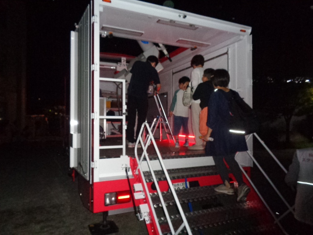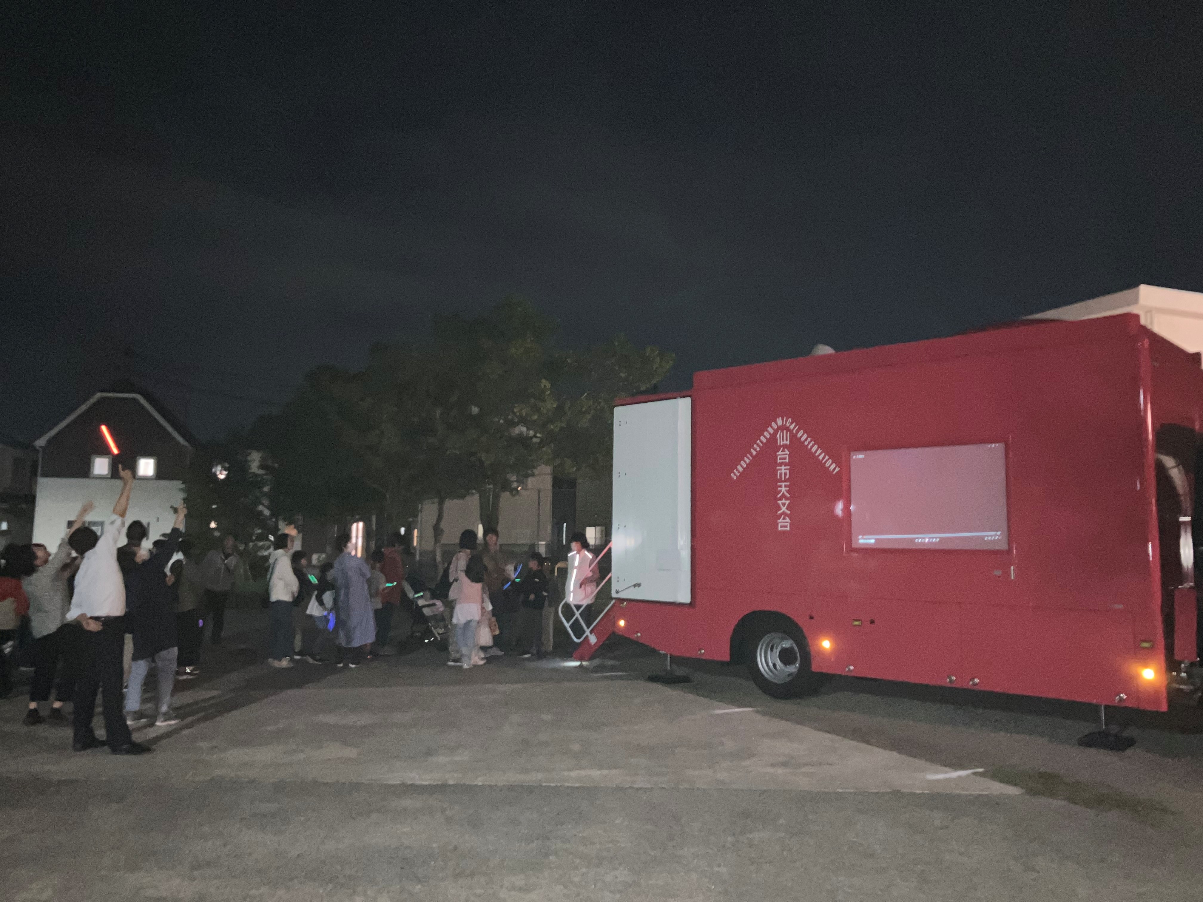 第2部では、仙台市天文台からやってきた移動天文台「ベガ号」による天体観察が実施され、夏の大三角を構成する星々や土星を望遠鏡で観望し、参加者は夜空の神秘に感動していました。