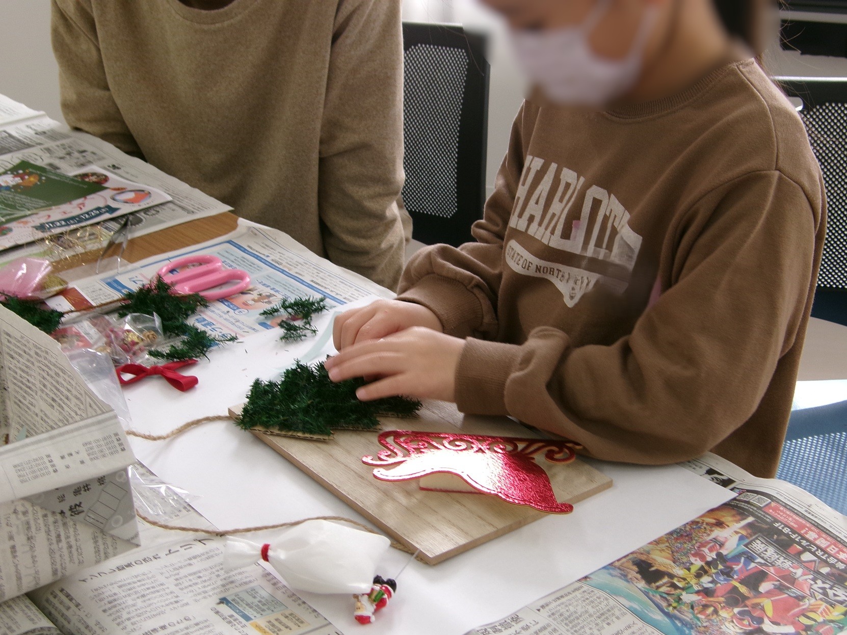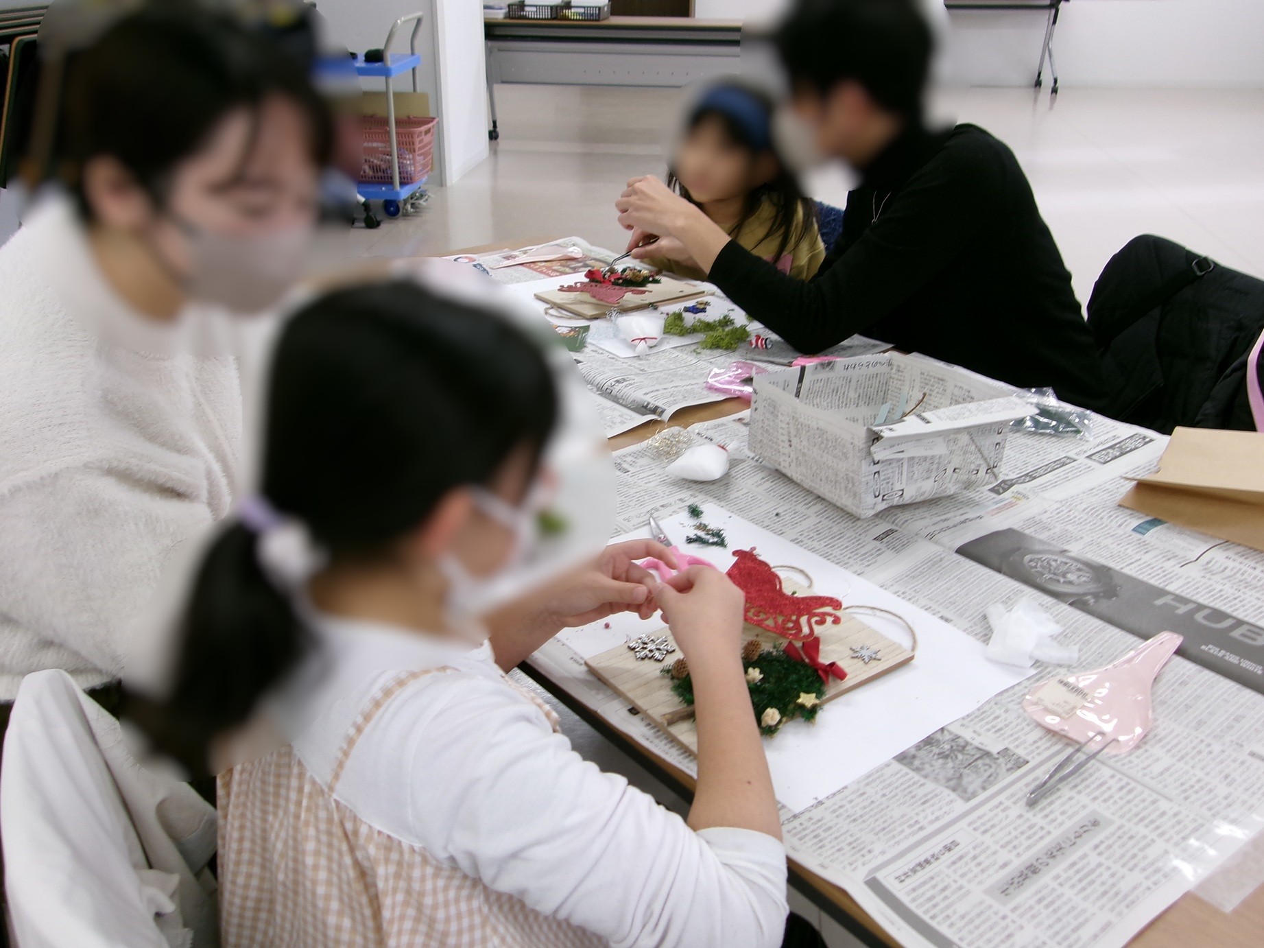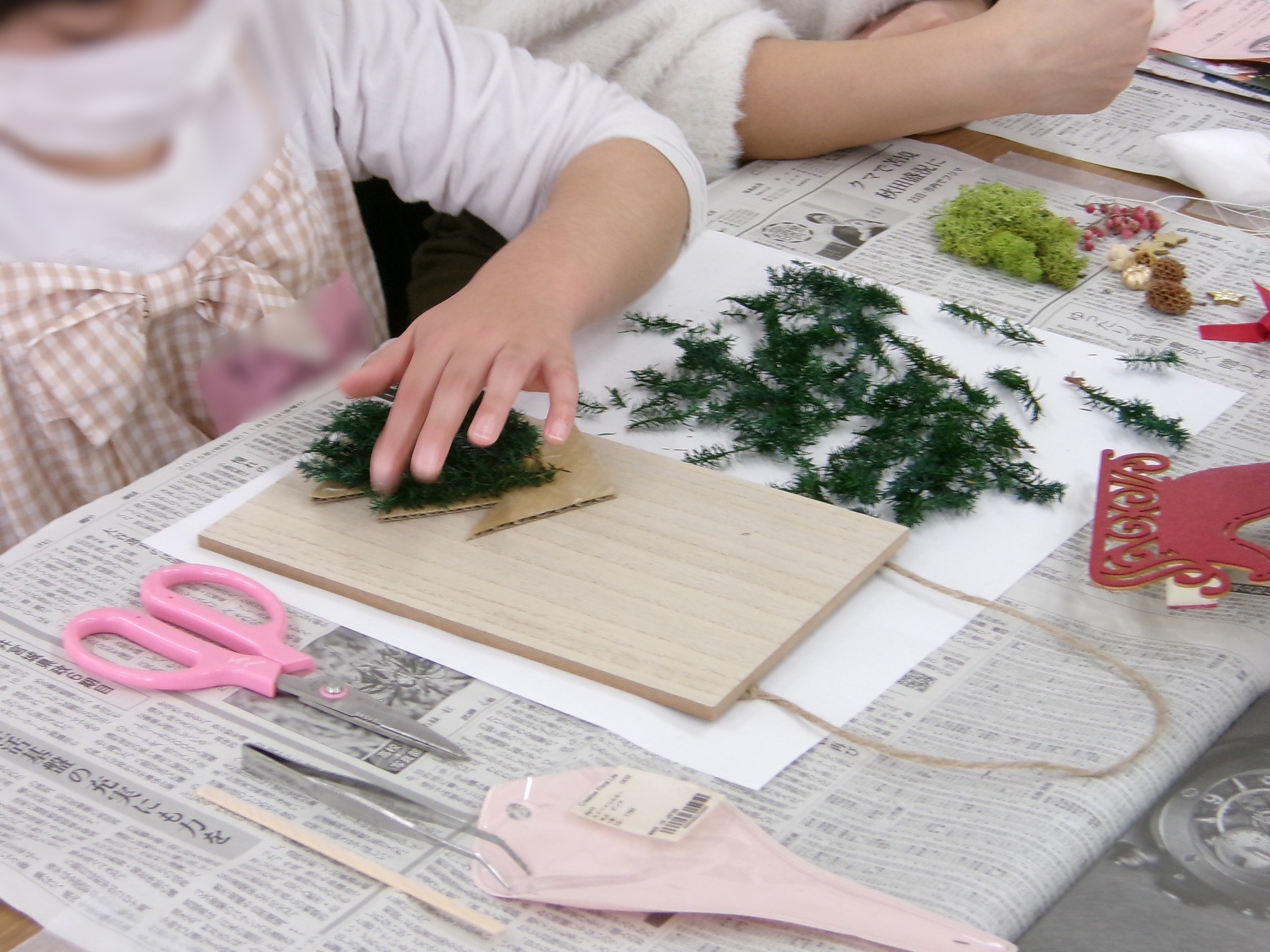 12月6日(土曜日)、せんだい農業園芸センターから講師の伊藤幸子さんと佐々木いづみさんをお招きして、クリスマスボードアレンジメントのワークショップをおこない、小学生12名とその親御さんにご参加いただきました。