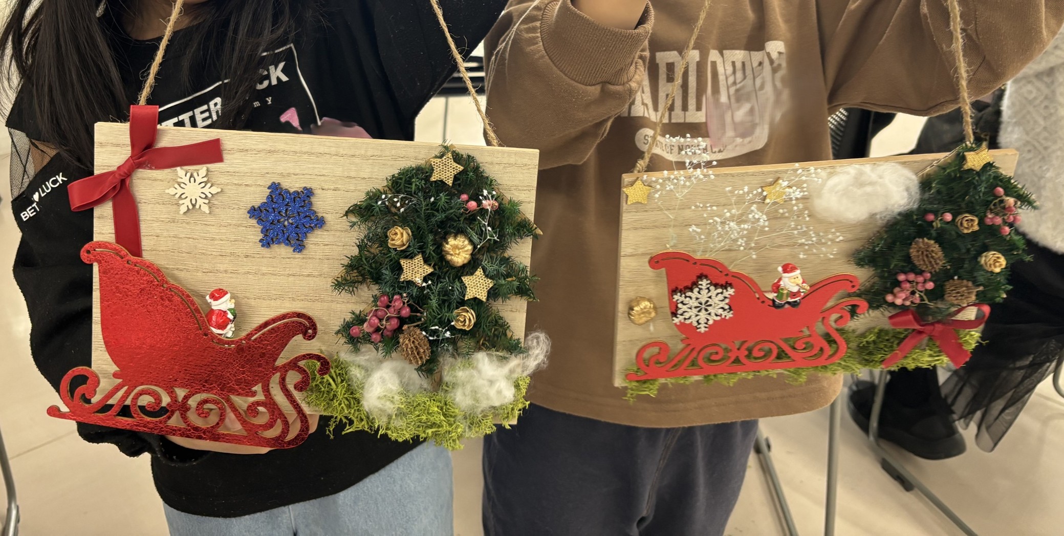 同じ材料でも配置や飾り付けのアイディアで唯一無二のクリスマスボードができあがりました。