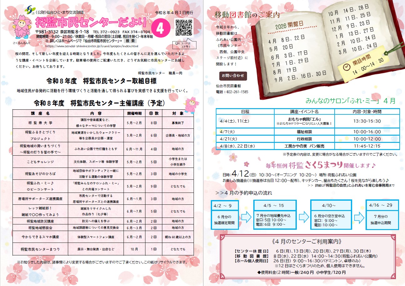 将監市民センターだより4月号掲載のお知らせ