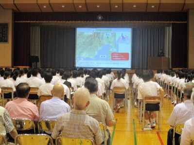 静岡市危機管理室職員による防災講話を田子中学校と共催しました。