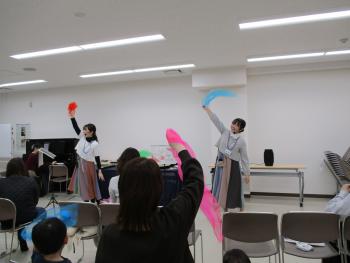 「音楽と一緒にスカーフや楽器など使って楽しい時間を過ごせました。」