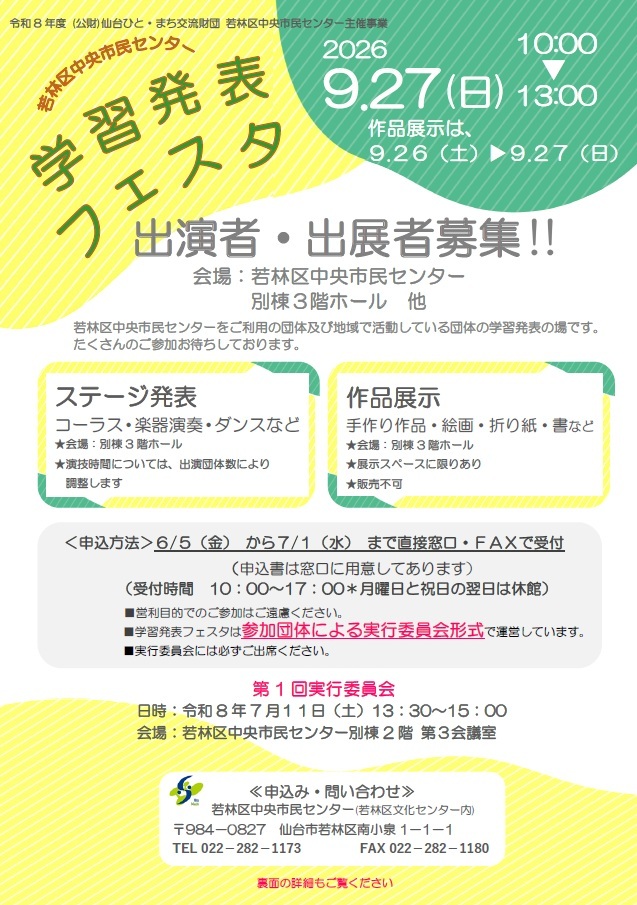 若林区中央市民センターを拠点に活動しているサークル情報を掲載しています。